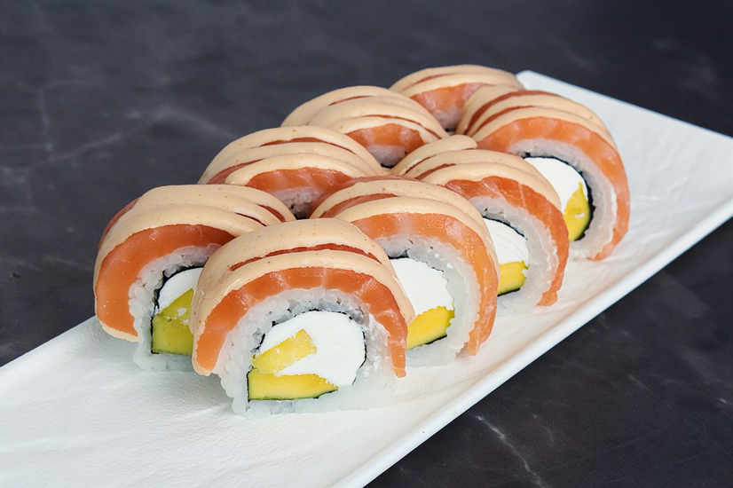 Склад: лосось,спайс соус,манго,крем-сир,норі,рис.