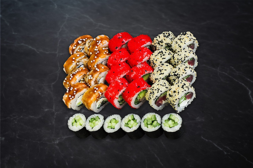 Роли: філа ебі,каліфа краб,філа тунець,макі огірок.