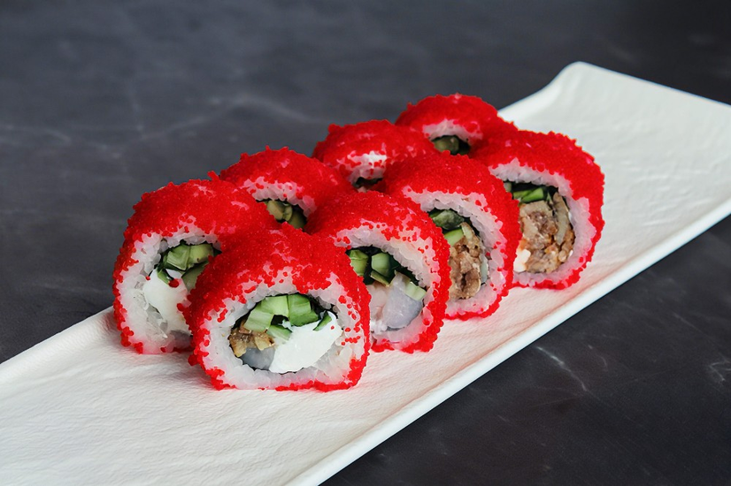 Склад: креветка,вугор,ікра,огірок,крем-сир,норі,рис.